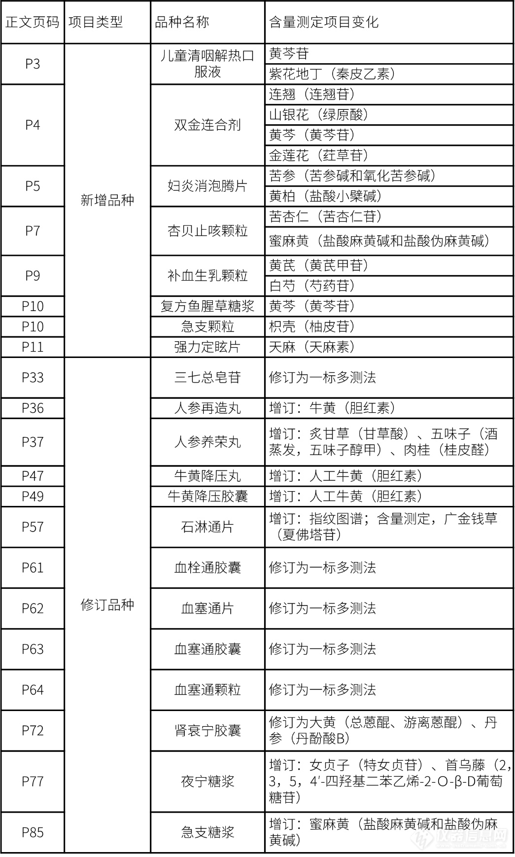 1、含牛黄和人工牛黄处方的中成药在含量测定项目增加了“胆红素”测定项目