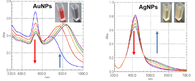 超快扫描速度,轻松追踪化学反应过程。下图为当纳米粒子中加入NaCl盐溶液后,在不同时间下紫光光谱监测到的粒子聚集过程。